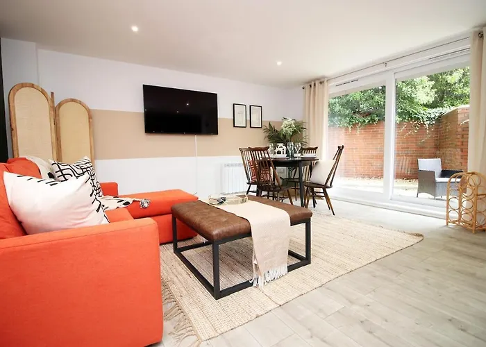 Modern Bournemouth Beach Apartment- Sleeps 6 - Private Garden, Ultrafast Wifi, Private Parking Space, Flat Screen Tv, 1 Minute Walk From Bars & Restuarants
